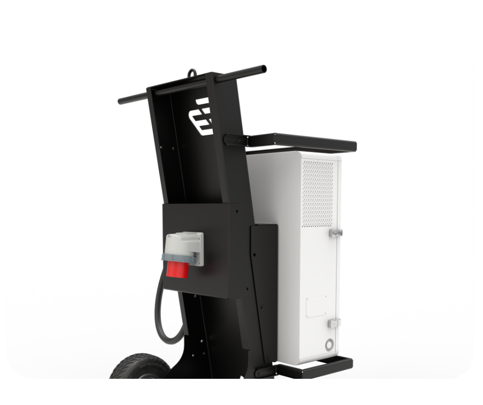 BasePro Mobile er en robust og fleksibel 30 kW hurtiglader – bygget på en mobil tralle med terrenghjul.