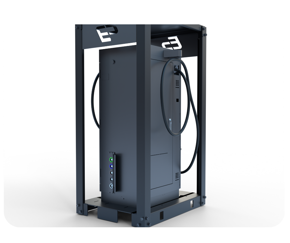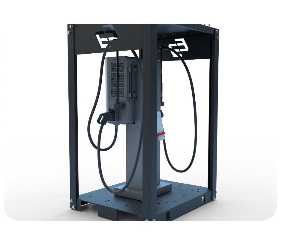 EasyPro Mobile er en fleksibel og kraftig 60kW DC-hurtiglader – bygget inn i et robust, pulverlakkert bur.
